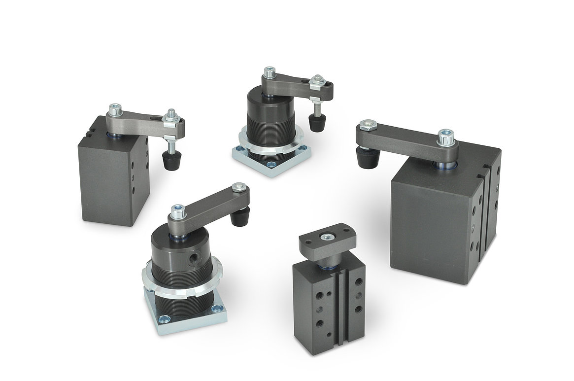 Schwenkspanner werden meistens dann eingesetzt, wenn die Spannstelle zum Einlegen und Entnehmen des Werkstückes nach oben hin frei zugänglich sein muss.