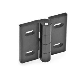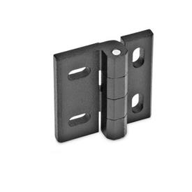Justierbare Scharniere lagern und befestigen Türen und Klappen schwenkbar an Anlagen und Gehäusen. Je nach Form, lassen sich die Scharniere entlang ihrer Befestigungs-Langlöcher, längs und – oder – quer zur Scharnierachse justieren um z.B. Türspaltmaße anpassen zu können.