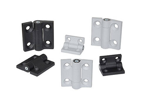 Bei Scharnieren GN 437 kann über eine Stellschraube die Beweglichkeit des Scharniers verändert werden. Das Schwenken von Türen und Klappen wird gehemmt und einer selbsttätigen Bewegung dadurch entgegengewirkt.