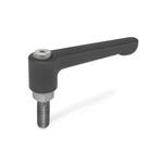 Adjustable hand levers GN 302.2 have a straight lever, not inclined, being parallel to the clamping space.