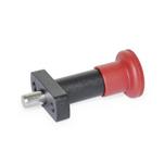 Indexing plungers GN 817.1 (Type C) are used for such applications where the plunger has to stay in its retracted position. To achieve this, the knob is rotated by 90° degrees after being retracted. A notch keeps the plunger in this position.