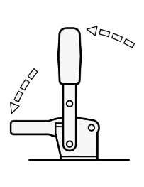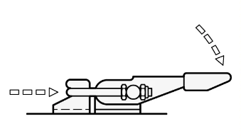 On these clamps, the swinging movement of the operating handle is converted into an axial movement to push or pull the plunger.