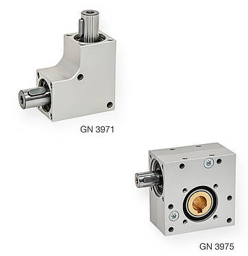 El reductor de engranaje cónico GN 3971 está disponible en siete tamaños con longitudes de la casaca que van desde los 32 hasta los 60 mm y con anchos que van desde los 18 a los 35 mm. La relación de engranaje entre los ejes del reductor siempre es de 1, y la dirección de giro se pueden seleccionar. Los ejes del engranaje pueden recibir fuerzas axiales y radiales de 60 newtons en el modelo más pequeño, y de 550 newtons en el más grande. La geometría especial dentada de los engranajes cónicos hechos de acero endurecido permite lograr pares de torsión particularmente altos correspondientes a su tamaño. Pueden alcanzar los 10 newton metro, según la velocidad de trabajo.