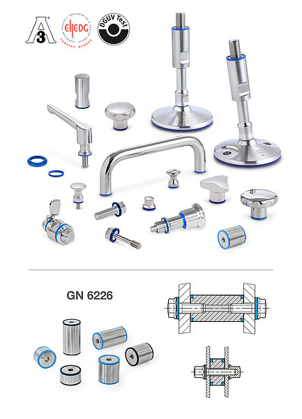 Como última incorporación a la gama de productos higiénicos "Hygienic Design", Ganter ofrece ahora los espaciadores GN 6226. Estos elementos normalizados evitan fácilmente las superficies de doble construcción, que son problemáticas y complicadas de limpiar y sellar. De este modo, continúa creciendo la gama de productos HD, que ya incluía diversas versiones de pomos, manillas, palancas de sujeción, pernos de bloqueo, cerraduras, cubiertas protectoras, pies de nivelación y tornillos.