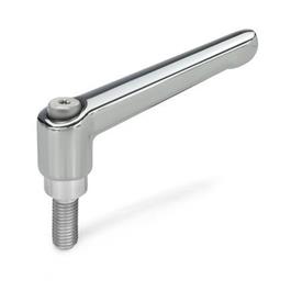 Palancas de apriete de acero inoxidable: las palancas de apriete ajustables con empuñadura totalmente de acero inoxidable son adecuadas para aplicaciones en condiciones agresivas o situaciones que requieran materiales inoxidables, como en la industria alimentaria o química.