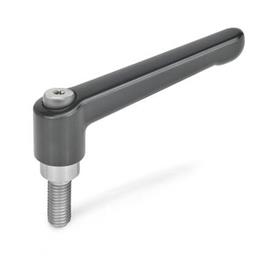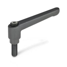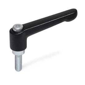 Palancas de apriete ajustables con rosca interna, rosca externa, agujero en tolerancia