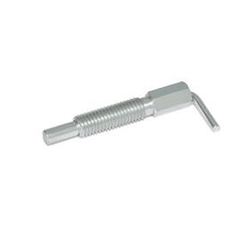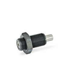 La fuerza de corte del pasador de retención es decisiva a la hora de determinar la fuerza del dispositivo de retención. Dependiendo del tipo de posicionador de muelle, el usuario puede elegir entre varios elementos de accionamiento. Ganter proporciona pasadores de retención o posicionadores de muelle hechos de acero o de acero inoxidable resistente a la corrosión, dependiendo de la aplicación.