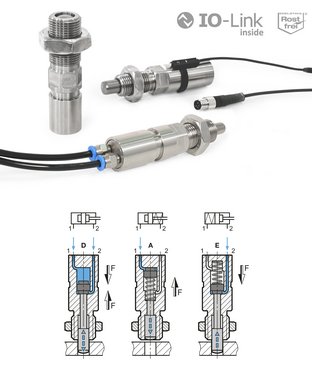 Indeksitapit toimivat 4–6 baarin paineessa, IP 67 -luokituksen mukainen tunnistin 12–30 voltin tasajännitteessä.