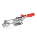 Les sauterelles à crochet GN 851.4 sont parfaitement verrouillées en position fermée afin d'éviter tout desserrage accidentel ou dû aux vibrations. Le verrou peut être libéré d'une seule main. La course de l'étrier de serrage peut être ajustée en fonction de sa plage de réglage.