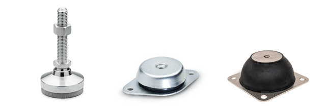 3.4 Installation, levage, amortissement avec pieds de nivellement, mécanisme de levage et éléments en caoutchouc