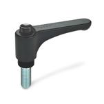 GN 600 Maniglie a ripresa piatte Plastica, boccola filettata in ottone, con pulsante di sblocco